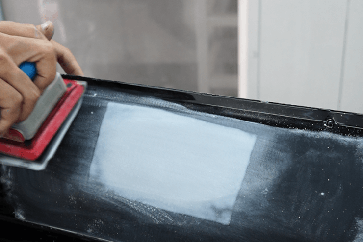 Aplique o primer e deixe secar completamente. Lixe até obter uma superfície lisa usando lixa P400–P600 e, em seguida, finalize com lixa seca P2000.